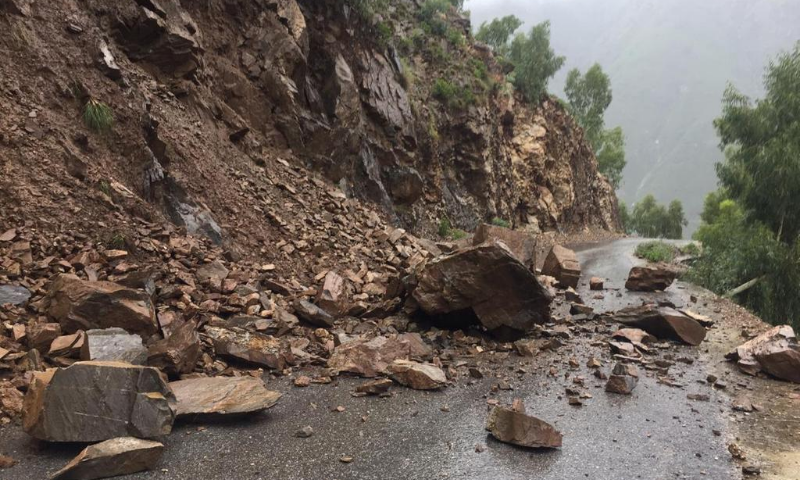 مسلسل بارش، ہری پور میں لینڈ سلائیڈنگ، کنی روڈ بند